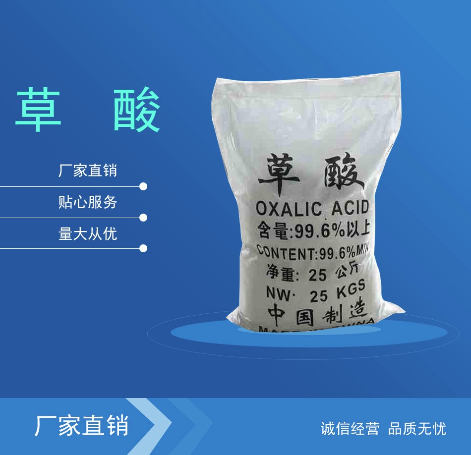 性状说明:无色单斜片状或棱柱体结晶或白色粉末、氧化法草酸无气味、合成法草酸有味。150~160℃升华。在高热干燥空气中能风化。1g溶于7ml水、2ml沸水、2.5ml乙醇、1.8ml沸乙醇、100ml乙醚、5.5ml甘油,不溶于苯、氯仿和石油醚。0.1mol/L溶液的pH值为1.3。相对密度(d18.54)1.653。熔点101~102℃(187℃,无水)。低毒,半数致死量(兔,经皮)2000mg/kg。